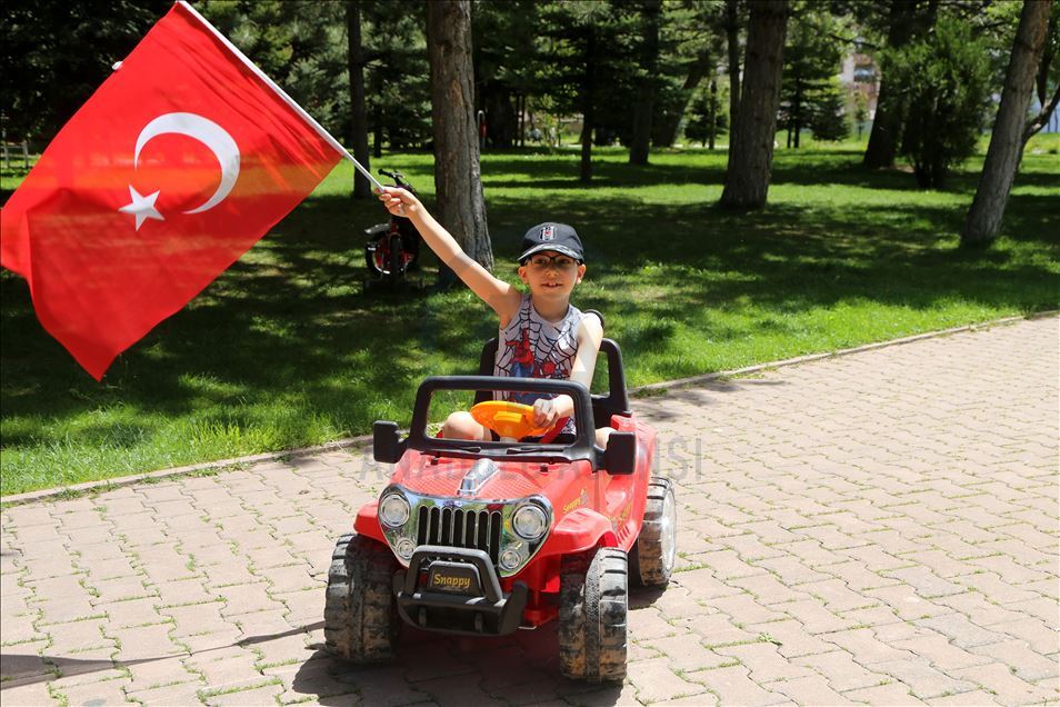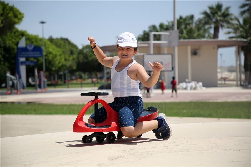 Bazı çocuklar arkadaşlarıyla top oynarken bazıları ise bisiklete bindi. Çocuklar, kent merkezindeki Atapark ve Huzurpark'ta keyifli vakit geçirdi.
