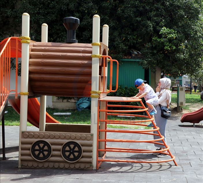 Uşak'ta, yeni tip koronavirüs (Kovid-19) nedeniyle sokağa çıkmaları kısıtlanan 14 yaş altı çocuklar, istisna uygulaması kapsamında bir hafta sonra tekrar sokağa çıktı. Kent merkezindeki Ata Park'a aileleriyle gelen çocuklar, burada eğlendi. ( Mehmet Çalık - Anadolu Ajansı )
