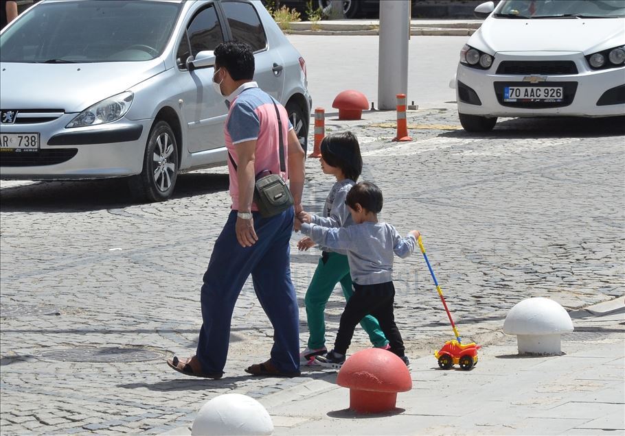 Karaman'da saat 11.00'den itibaren aileleri ile sokağa çıkan çocuklar, sosyal mesafe kuralına uygun bir şekilde park ve yeşil alanlara koştu.