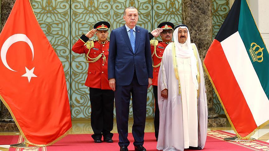 Cumhurbaşkanı Erdoğan ile Kuveyt Emiri el Sabah'ın tören alanındaki yerlerini almalarının ardından, iki ülkenin milli marşları çalındı. Erdoğan, daha sonra tören kıtasını selamladı.