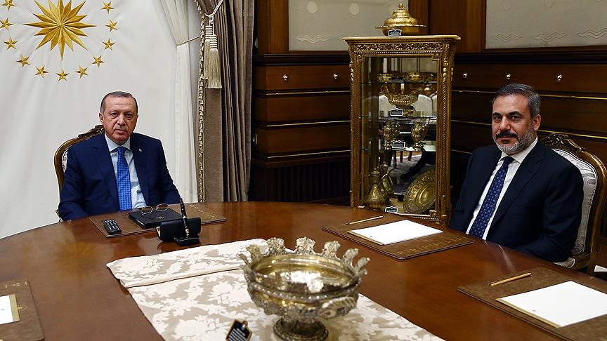 Cumhurbaşkanı Recep Tayyip Erdoğan, MİT Müsteşarı Hakan Fidan ve beraberindeki heyeti kabul etti.