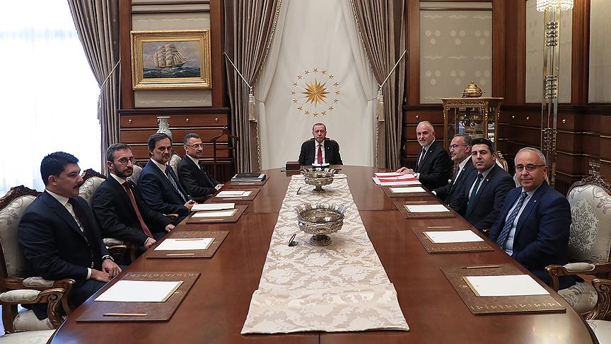 Görüşmeye, Cumhurbaşkanı Yardımcısı Fuat Oktay, Cumhurbaşkanlığı İletişim Başkanı Fahrettin Altun da katıldı.