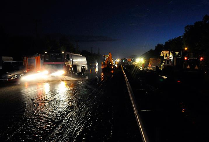 Devrilen tırın çekici yardımıyla kaldırılmasının ve yola dökülen çamurun temizlenmesinin ardından, uzun araç kuyruklarının oluştuğu otoyol trafiğe açıldı.