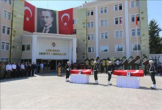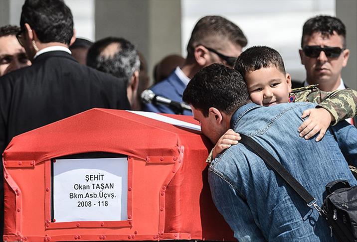 Törene, şehidin eşi Aylin Taşan'ın polis üniformasıyla, oğlu Meriç'in ise askeri kıyafetle geldiği görüldü.