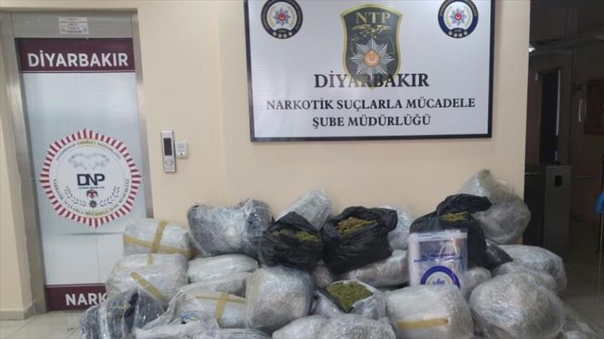 Diyarbakır'da bir iş yerinde yapılan aramada 342 kilogram esrar maddesi ele geçirildi, 1 şüpheli gözaltına alındı.