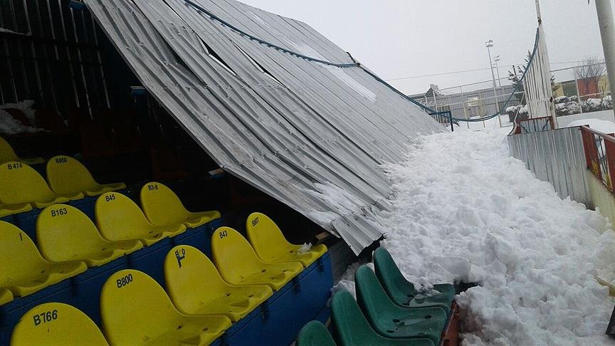 Etkili kar yağışının günlük yaşamı olumsuz etkilediği Diyarbakır'da, Seyrantepe Spor Tesislerindeki DİSKİ Spor Sahasının tribünlerinin çatısı, biriken karların ağırlığını taşıyamayarak çöktü.