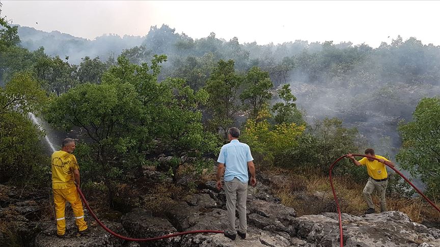 Dağlık alandaki 20 hektara yakın bir arazide etkili olan yangına, arazinin sarp yapısı nedeniyle müdahalede zorluklar yaşanıyor.