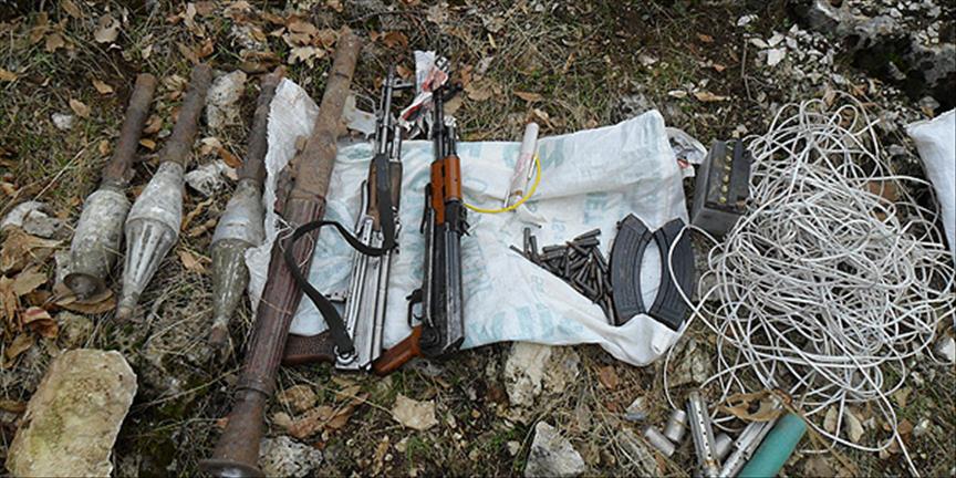 Mağarada yapılan aramada, 1 adet RPG-7 roketatar, 3 adet RPG-7 roketatar anti tank mühimmatı, 3 adet RPG-7 roketatar sevk fişeği, 2 adet kaleşnikof tüfek, 43 fişek, 100 metre uzunluğunda patlayıcı düzeneğinde kullanmaya hazır elektrik kablosu, akü, çeşitli ebatlarda pil, patlama düzeneğinde kullanılan 20 santimetre boyunda saniyeli fitil, adi kapsül, dinamit lokumu olmak üzere çok sayıda silah, mühimmat ve malzeme ele geçirildiği kaydedilen açıklamada, RPG-7 roketatar mühimmatı, sevk fişeği, adi kapsül, saniyeli fitil ve dinamit lokumunun tuzaklama ihtimaline karşı uzman personelce yapılan kontrol sonucunda ilgili adli makamların talimatı ile gerekli tedbir alınarak imha edildiği belirtildi.