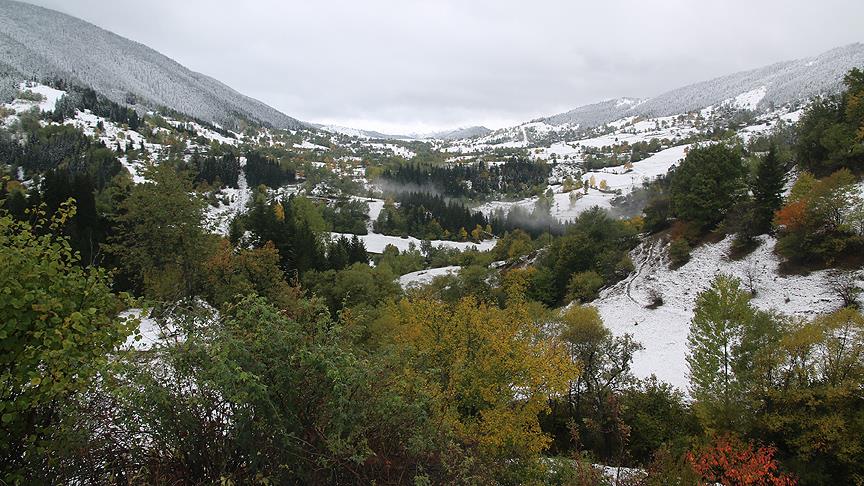Doğu Karadeniz'de hava sıcaklıklarının düşmesiyle yüksek kesimlerde adeta 2 mevsim bir arada yaşanıyor.