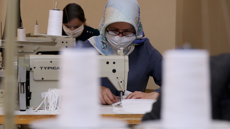 Kültür Merkezinde oluşturulan atölyede belediye personeli tarafından salgının başladığı mart ayından bu yana üretilen yaklaşık 3 milyon maske vatandaşlara dağıtıldı.