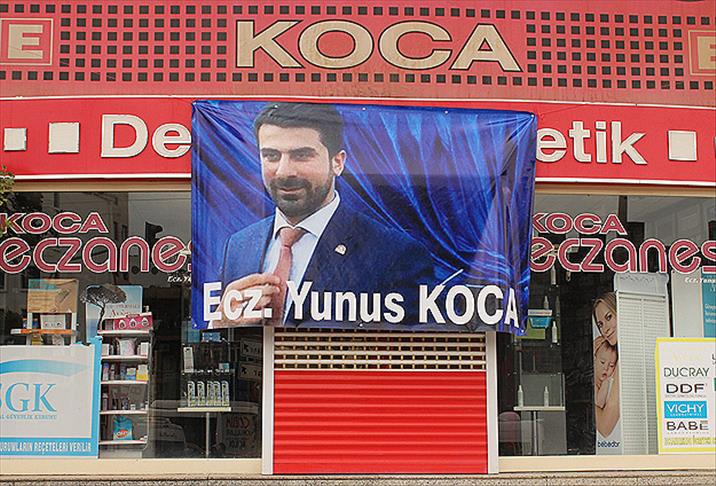 Eczacılar, saldırıya tepkilerini iş yerlerinin camlarına Koca'nın fotoğrafını ve "Yastayız" yazılı afişler asarak gösterdi.