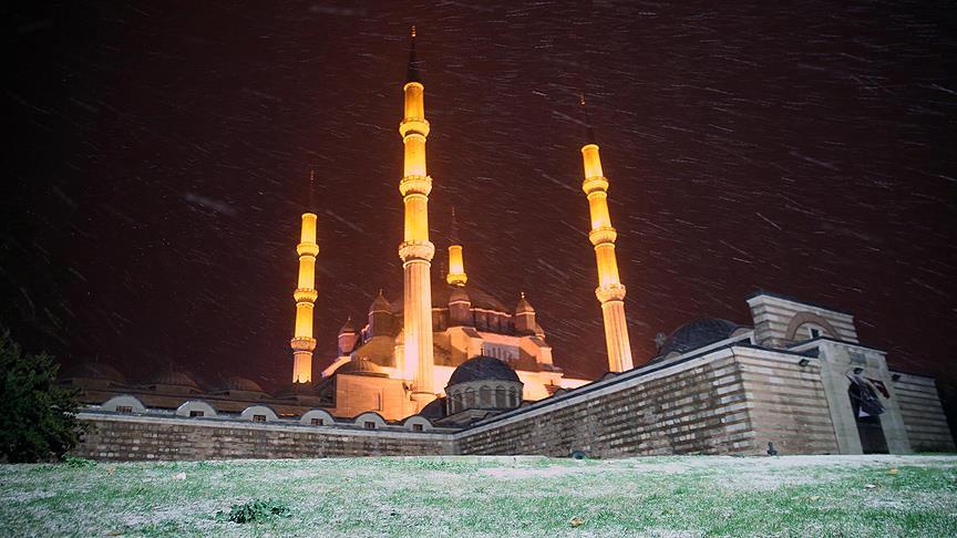Edirne'de kar etkili oluyor.
