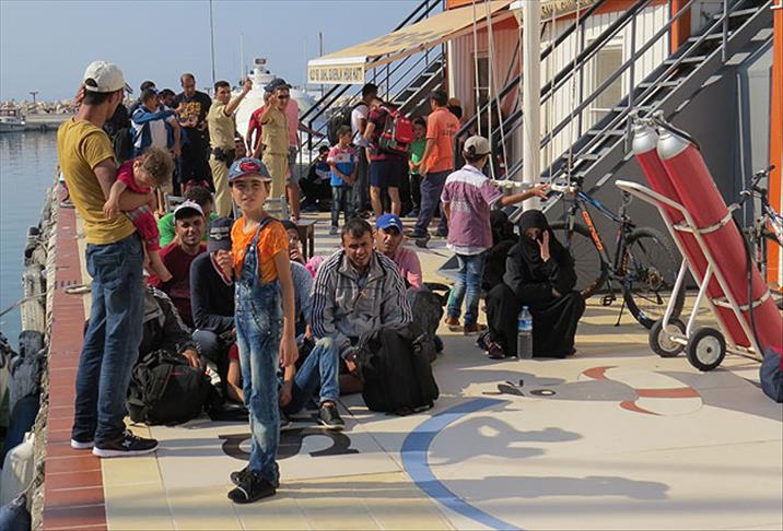 Lastik botlarda bulunan Suriyeli 286 kaçak, Yunan kara sularına girmeden yakalandıktan sonra ekiplerce "TCSG 6" botu ile Küçükkuyu beldesine getirildi.
