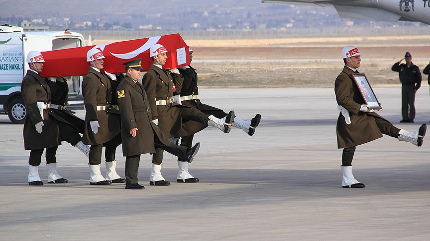 Fırat Kalkanı Harekatı kapsamında Suriye'nin kuzeyindeki El Bab bölgesinde terör örgütü DEAŞ ile yaşanan çatışmada şehit olan 5 askerin cenazeleri, Gaziantep'teki törenin ardından son yolculuklarına uğurlanmak üzere memleketlerine yollandı.
