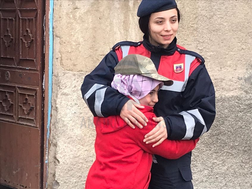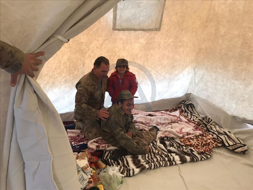 Elazığ'da engelli çocuğu da bulunan 8 kişilik depremzede ailenin yüzü jandarmanın desteğiyle güldü.