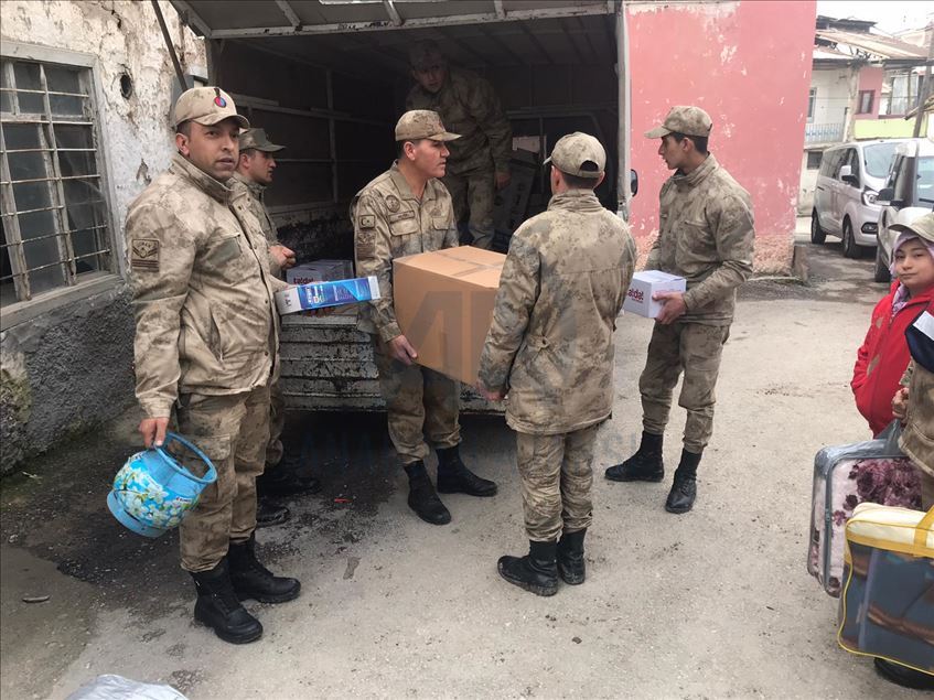 Merkez üssü Elazığ'ın Sivrice ilçesi olan 6,8 büyüklüğündeki depremin ardında ailelerin yaraların sarılması için başta köyler olmak üzere, birçok yerde yoğun çaba gösteren İl Jandarma Komutanlığı, şehir merkezindeki ailelere de yardım elini uzatıyor.