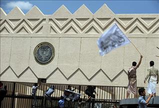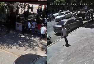 Büyükelçiliğe yakın bir hastanenin güvenlik kameralarına yansıyan görüntüde canlı bomba Ecevit Şanlı, Paris Caddesi'nden ABD Büyükelçiliği'ne ilerliyor.