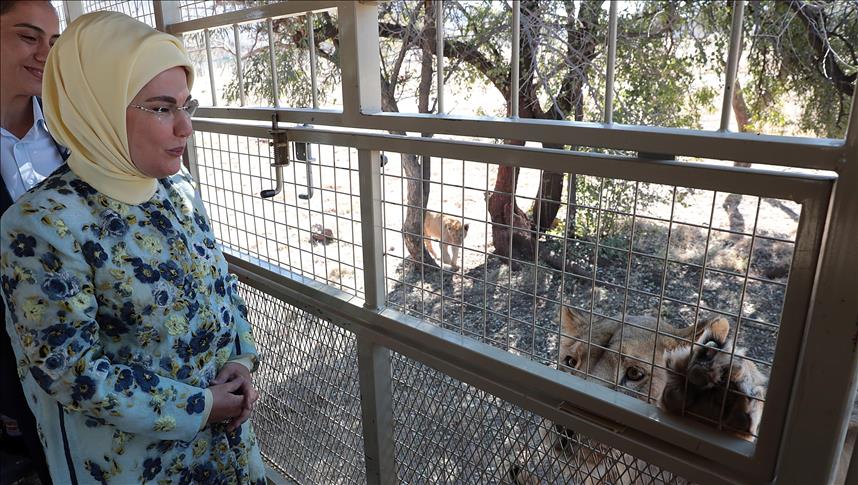 Emine Erdoğan, yavru aslanları sevdiği fotoğrafların yer aldığı paylaşımında, "Güney Afrika Cumhuriyeti'ne gitmişken Aslan Park'ı ziyaret ederek yavru aslanları sevdik. Yaban hayatı yakından gözlemledik." ifadesini kullandı.