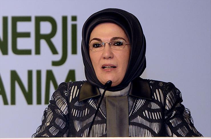Emine Erdoğan, dünya nüfusunun neredeyse dörtte birinin, elektrik enerjisine sahip olmadığını belirterek şöyle konuştu: "Bizler, ışıl ışıl aydınlanmış şehirlerde, parlak vitrinlerin önünden geçerken, evlerimizde her türlü elektrikli aracı kullanırken hayatında hiç elektrik düğmesine basmamış insanlar var. Bizler böyle bir manzaraya sırtını dönerek, hayatını devam ettirenlerden asla olamayız. Dünya üzerindeki bu eşitsizliğe, bu adaletsizliğe karşı yürütülecek en önemli mücadele; tasarruftur. Bir çamaşır makinesinin, bulaşık makinesinin düğmesine basarken dünyadaki kaynakların adaletsiz dağılımından ve açlıktan dolayı hayatını kaybeden masum yavruları düşünmek zorundayız"
