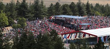 "Burada olduğu gibi toplumun bütün kesimlerini kapsayan projeler üretiyoruz. Bağcılar Belediyesi Engelliler Sarayı'nda eğitim gören engellilerimiz, SAS komandoları eşliğinde bir zafer dalışı yapıyorlar. Böylece engellilerimize fırsat tanındığında neler yapabileceklerine de şahit oluyoruz. Onlar bunun mutluluğunu yaşarken 30 Ağustos Zafer Bayramı'nın 96. yılına ayrı bir anlam katmış oluyoruz. Cesaretlerinden dolayı engelli yavrularımızı ve ailelerini tebrik ediyorum. Bu vesileyle de 30 Ağustos Zafer Bayramı'nızı kutluyorum."