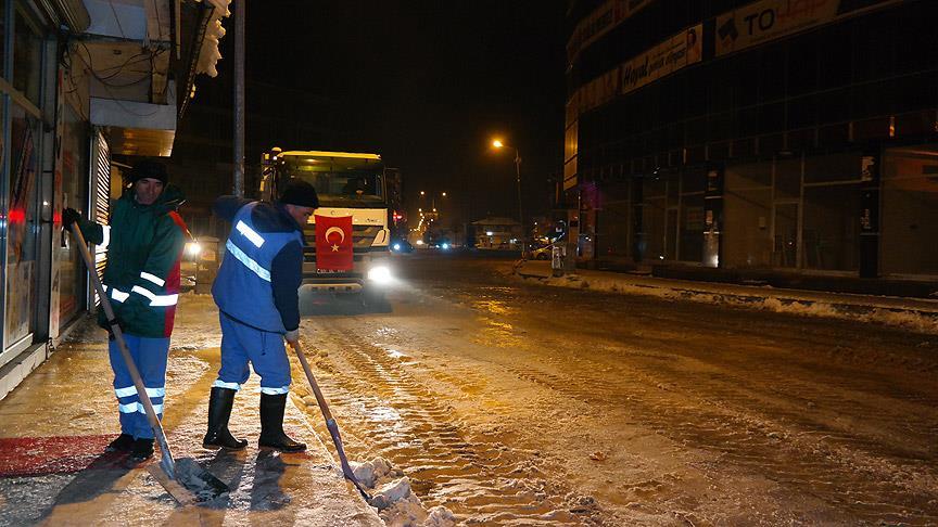 İçişleri Bakanlığınca Kanun Hükmünde Kararname (KHK) ile görevlendirme yapılan Van'ın Erciş Belediyesinde ekipler karla mücadele çalışması yürütüyor.