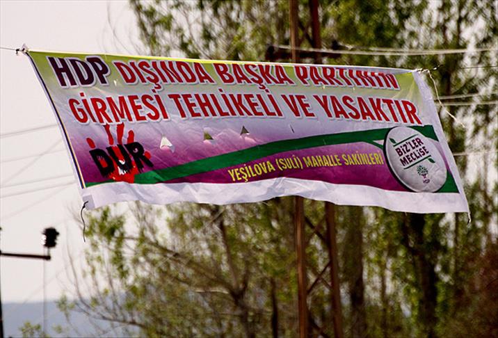 Erciş'te, Yeşilova Mahallesi girişindeki caddeye, "HDP dışında başka partinin girmesi tehlikeli ve yasaktır" yazılı pankart asılması, tepkiyle karşılandı.