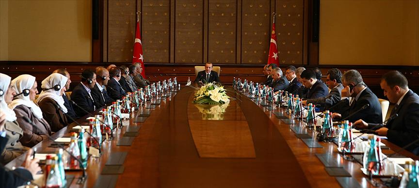 Erdoğan, Irak'tan Türkiye'ye sığınan ve ülkede ikamet eden Ezidilerden oluşan heyeti kabulünde, kendilerini Cumhurbaşkanlığı Sarayı'nda ilk kez böyle bir toplantıda ağırlamaktan memnuniyet duyduğunu söyledi.
