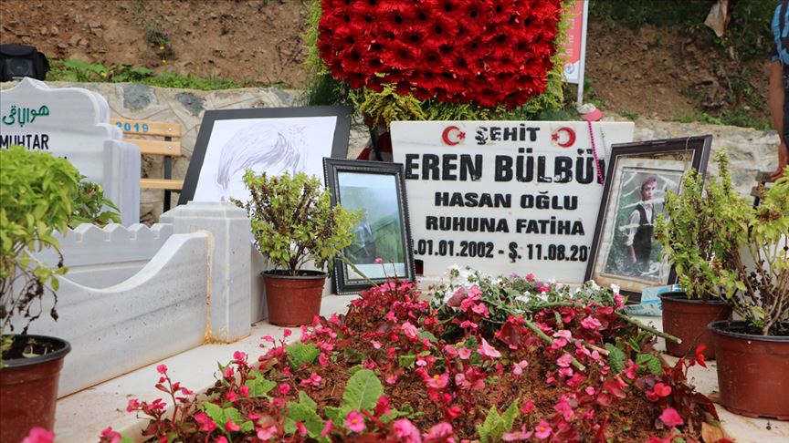 Trabzon'un Maçka ilçesi kırsalında, 11 Ağustos 2017'de bölücü terör örgütü mensuplarıyla sıcak temas sırasında şehit olan Eren Bülbül, şehadetinin ikinci yılında mezarı başında anıldı.