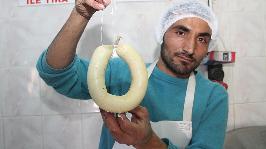 Erzincan'da peynir üreten bir işletmenin sahibi Özkan Beydilli, ambalaj sorununun önüne geçmek ve lezzetiyle öne çıkan Erzincan tulum peynirinin tanıtımı amacıyla doğal koyun bağırsağına doldurulmuş çörek otlu, çam fıstıklı ve Antep fıstıklı kangal tulum peyniri üretti.