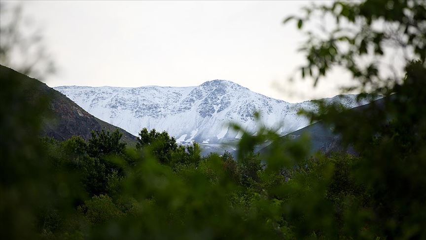 Üzümlü ilçesinde bulunan 3 bin 549 metre yüksekliğindeki Esence Dağı'nın haziran ayında beyaza bürünmesi görenleri şaşırttı.