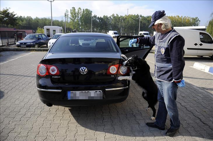 ''Dizel'' isimli eğitimli köpek eşliğinde yapılan aramada, otomobilin bagajında bulunan 6 valizin içerisinde toplam 150 kilogram eroin ele geçirildi.