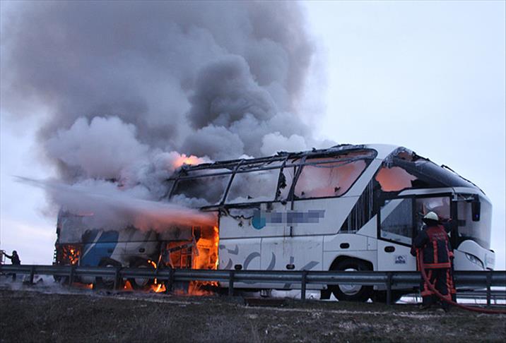 İstanbul-Ankara seferini yapan Ahmet Kandil yönetimindeki 34 YP 2003 plakalı yolcu otobüsü, Akıncılar Gişeleri'ne 4 kilometre kala yanmaya başladı.