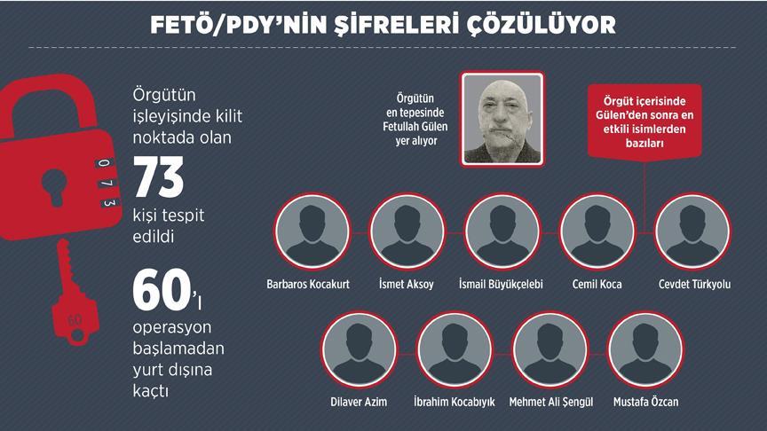 AA muhabirinin emniyet yetkililerinden aldığı bilgilere göre, devletin, tüm birimleri ile topyekun mücadele ettiği FETÖ/PDY'ye yönelik operasyonlar, örgütün yapısını ve işleyişini de deşifre ediyor. Ankara Emniyet Müdürlüğü Terörle Mücadele Şube Müdürlüğü ekiplerinin 17-25 Aralık operasyonlarından sonra yaptıkları başarılı çalışmalar da bu yapının deşifresinde önemli rol oynuyor. En son cuma günü yapılan operasyon, haklarında gözaltı kararı çıkarılanların tamamı örgütün kilit isimleri olduğu için, öncekilerden farklılık arz ediyor.