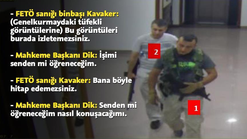 Sorgusunun ardından kamera görüntüleri izlettirilen sanık Kavaker, "Bu görüntüleri̇ buradan i̇zletemezsiniz. Adi̇l yargılanma hakkına müdahale olduğunu düşünüyorum" di̇ye konuştu. Sanığın sözleri̇ üzerine Mahkeme Başkanı Oğuz Dik "İşimi senden mi̇ öğreneceğim" yanıtını verdi.