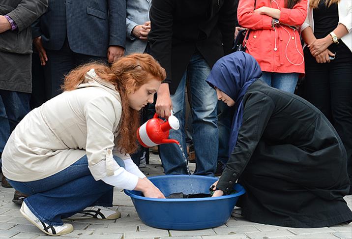 Yağmur altında eylemini gerçekleştiren grup, Başbakan Erdoğan'a ise sevgi gösterilerinde bulundu.