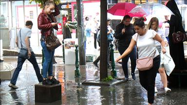İstanbul'da dün akşam saatlerinde etkili olan sağanak ve şiddetli fırtına sırasında simit tezgahını korumak için çaba harcayan simitçi Ali Kara, yaklaşık 15 dakika boyunca yağmur ve fırtınaya direndi.