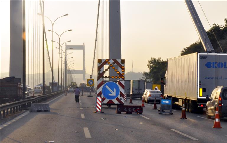 Onarım çalışmalarının sürdüğü köprüde, bir şeridin daha trafiğe kapatılması nedeniyle sabahın erken saatlerinde köprü girişinde uzun araç kuyrukları oluştu.