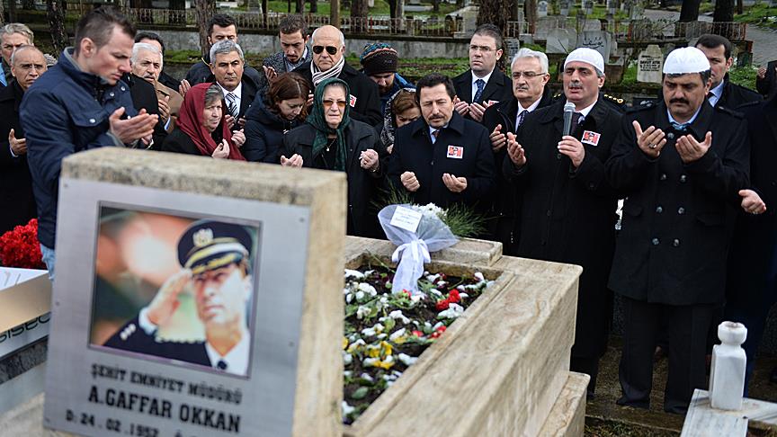 Diyarbakır'da uğradıkları saldırıda 5 silah arkadaşıyla hayatını kaybeden Emniyet Müdürü Ali Gaffar Okkan, şehadetinin 17'nci. yılında Sakarya'nın Hendek ilçesindeki mezarı başında anıldı.