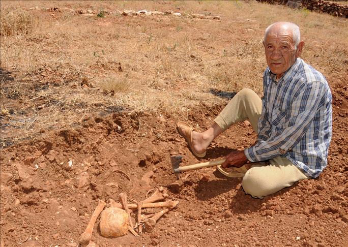 Arıca köyünde oturan Mehmet Ekinci (81), AA muhabirine yaptığı açıklamada, tarlasını kazdığı sırada birkaç kemiğe rastladığını söyledi.