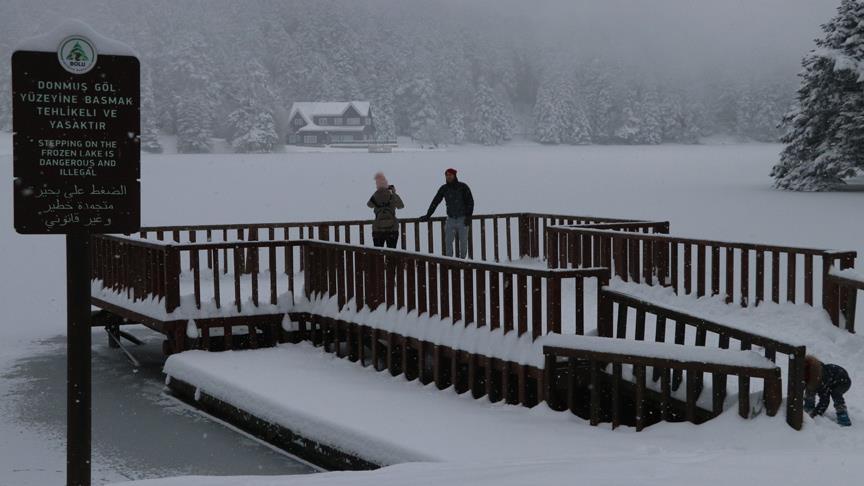 Gölün buz tutmasıyla tabiat parkı ayrı bir güzelliğe büründü. Günübirlik ve konaklamak için tabiat parkına gelen tatilciler, buz tutan gölün çevresinde yürüyüş yaptı ve fotoğraf çektirdi.