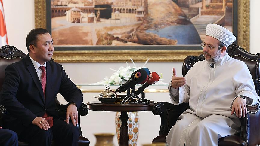 Diyanet İşleri Başkanı Mehmet Görmez, Kırgızistan Devlet Din Komisyonu Başkanı Zairbeg Ergeşev'in ziyaretinde, "20 senedir, 30 senedir kendi ülkenizi diğer yanlış ideolojilerden koruduğunuz gibi bu FETÖ yapılanmasından da koruyunuz. Korumanız için her türlü desteği vermeye hazırız. Diyanet İşleri Başkanlığı daima yanınızdadır. 25 yıldır birlikte yaptıklarımız, yapacaklarımızın teminatıdır." dedi.