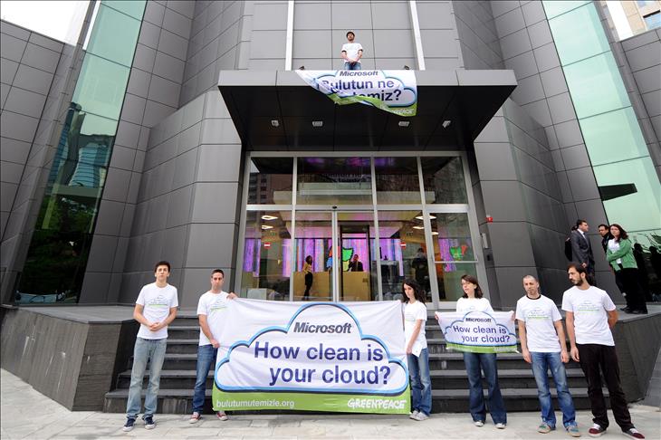 Nispetiye Mahallesi Aydın Sokak'ta bulunan Microsoft binasına gelen Greenpeace üyesi 10 kişi, üzerinde ''Microsoft bulutun ne kadar temiz?'' yazılı pankart açtı. Microsoft güvenlik görevlilerinin engel olmak istediği gruptan bir kişi, merdivenle binanın girişinin çatısına çıktı.