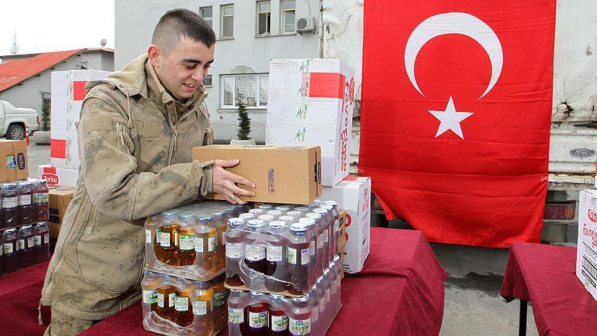 Kentte esnafın desteğiyle toplanan yiyecek, içecek ve giyim malzemeleri, sınır hattındaki üs bölgelerinde görev yapan askerlere gönderilmek üzere İl Jandarma Komutanlığına teslim edildi.