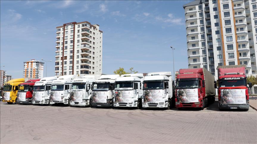 Konuşmalardan sonra edilen duanın ardından un yüklü 10 tır, Suriyelilere ulaştırılmak üzere yola çıktı.