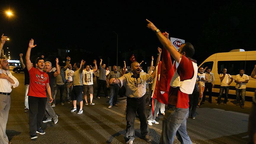Bölücü terör örgütü FETÖ/PDY mensuplarınca ele geçirilmeye çalışılan TRT'nin nizamiye kapısından içeri giren halk, ana binaya doğru yürüyor.