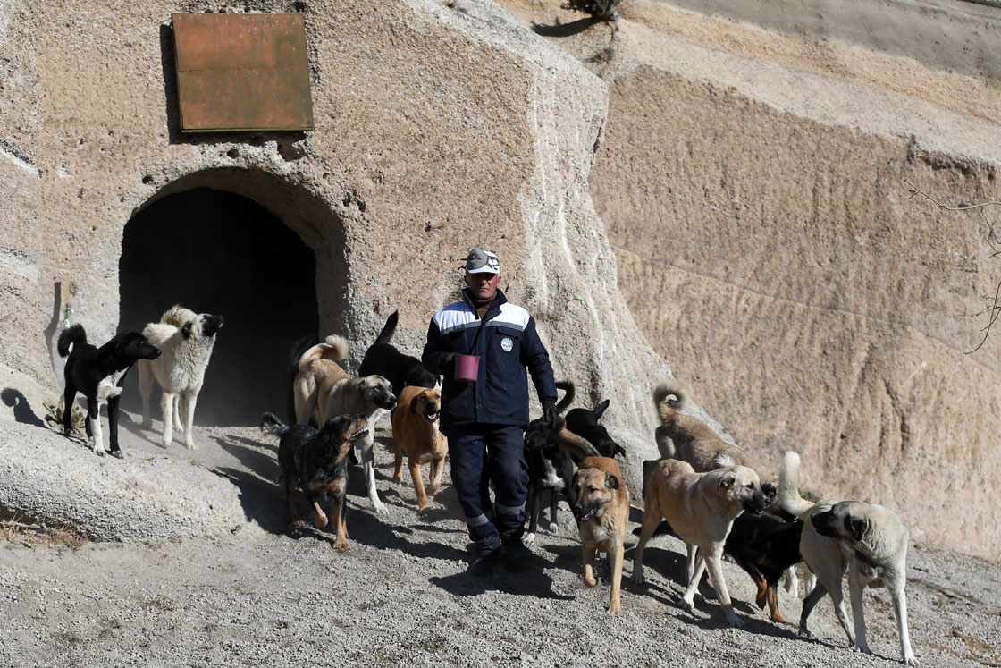 Kayseri'deki hasta ve sahipsiz köpekler, Talas Belediyesinin hizmete sunduğu 3 bin metrekarelik "Patiköy"de kayadan oyma mağaralarda hem barınıyor hem de rehabilite ediliyor.