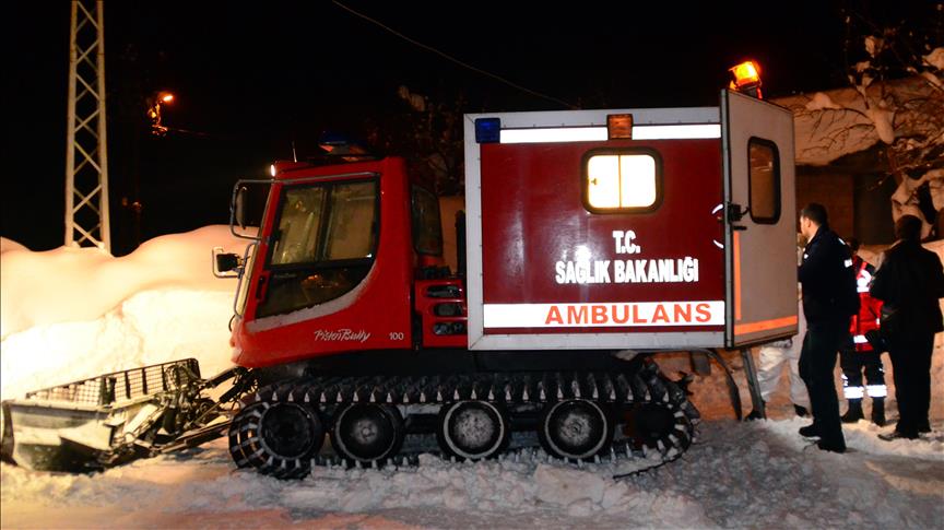 Bitlis'in Güroymak ilçesinde ekipler, yolu kardan kapanan köyde mahsur kalan hasta Zikrullah Aktaş'a paletli ambulansla ulaştı.
