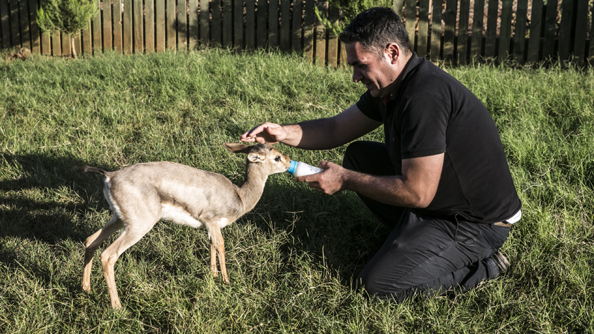 Hatay'ın Kırıkhan ilçesindeki Doğa ve Milli Parklar Şube Müdürlüğü Dağ Ceylanları Üretim İstasyonunda, gazella gazella türü Hatay dağ ceylanlarına adeta bebek gibi bakılıyor.