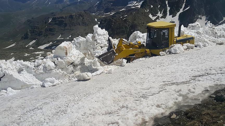 Bayburt'ta haziran ayında yayla yollarında karla mücadele çalışması yapılıyor.