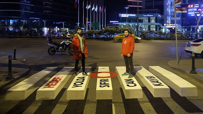 Merkezi noktalardaki yayaları ve şoförleri bilinçlendirmek ve trafik kazalarının azalması amacıyla gece yapılan çalışmayı birçok kişi de dikkatle izledi. Kara yollarında yaya geçitlerinin bulunduğu bölgelerde farkındalığı artırıcı özellikteki çalışmayı, iki grafiti sanatçısı yaklaşık iki saatte tamamladı.